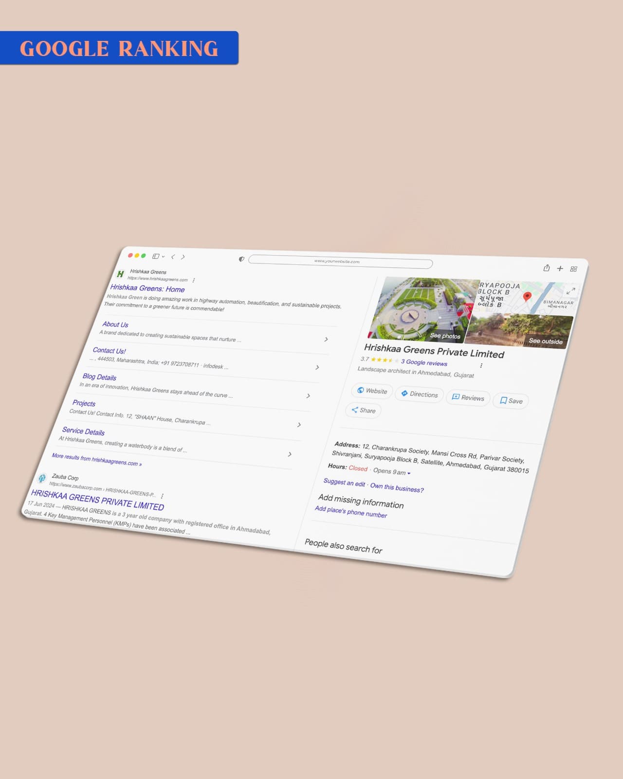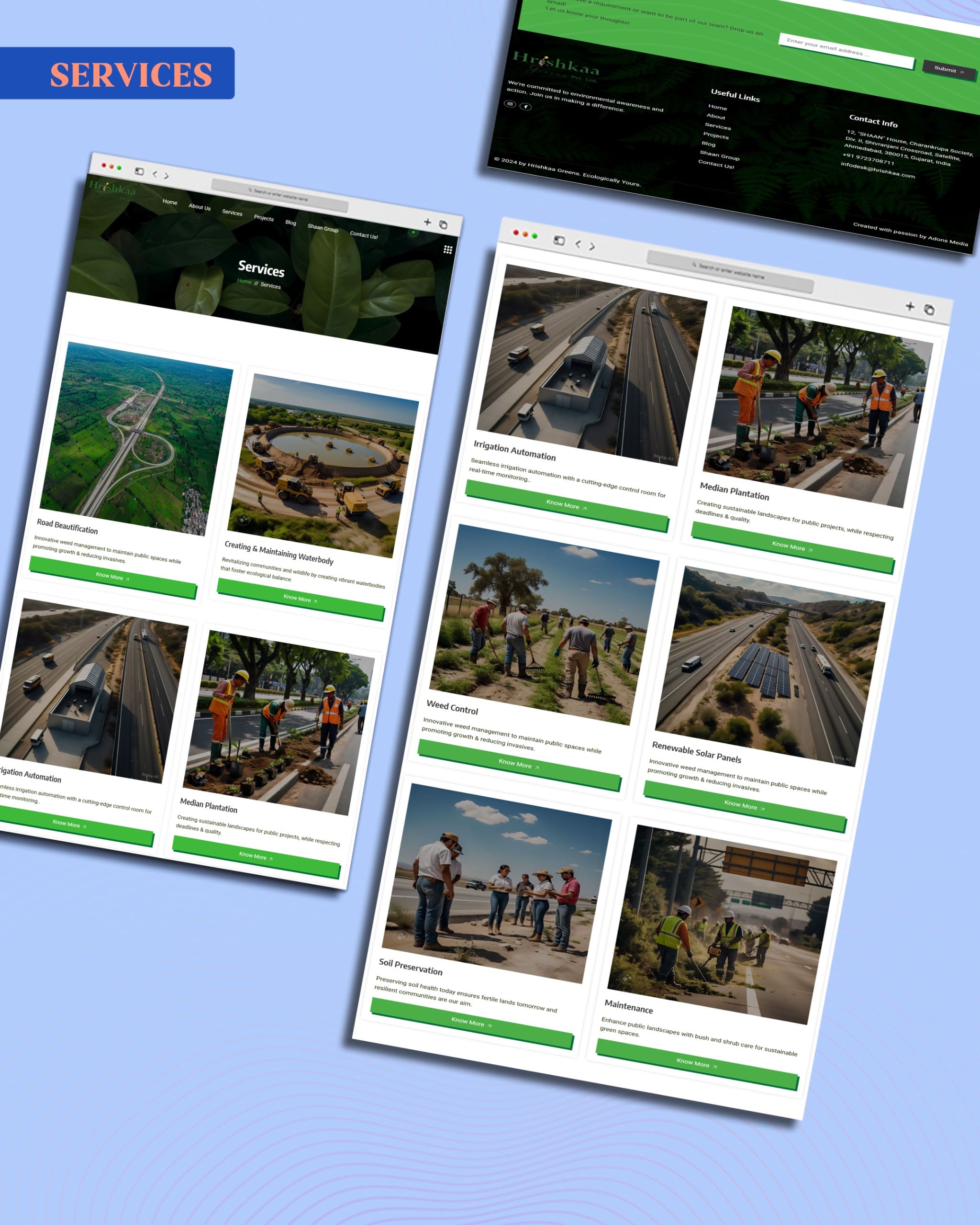 We successfully elevated Hrishkaa Greens’ online presence with a strategic Google ranking approach. By blending precision SEO with impactful content, we positioned them as leaders in sustainable government infrastructure projects. The result: stronger visibility, higher credibility, and a digital presence that perfectly mirrors their eco-conscious vision.